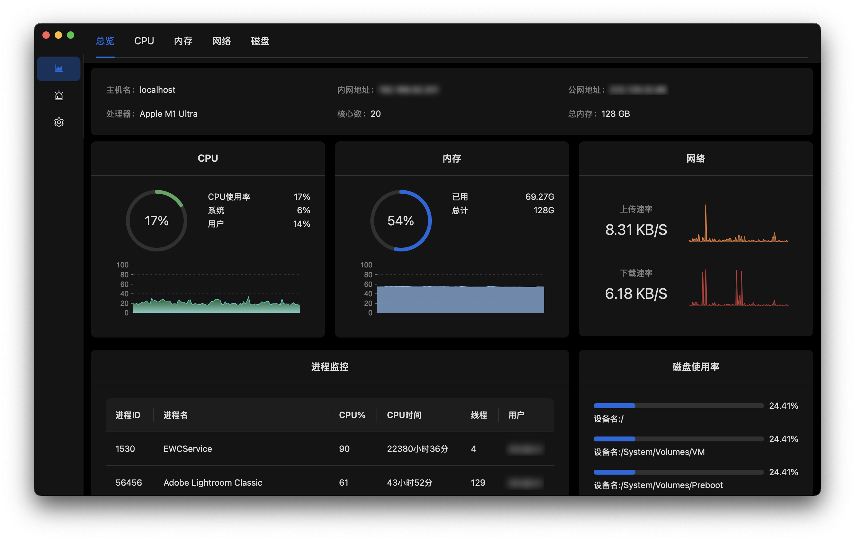 MonitorX是一款免费功能强大的系统监控仪表盘,实时监控CPU、内存、磁盘和网络状态、进程监控,让您的系统始终保持最佳状态。